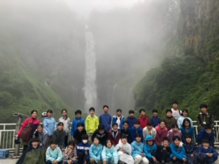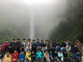 雨なのか霧なのか、顔に水しぶきを感じながら集合写真を撮りました。