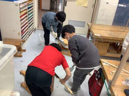 木を一人で切りにくい場合は、近くにいるクラスメイトにお願いして押さえてもらうなどして協力して取り組む姿がありました。作品が完成するのが楽しみです。