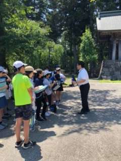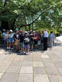 日光東照宮に到着しました。それぞれクラスごとにガイドさんから説明を伺い、しおりにメモをしています。