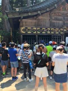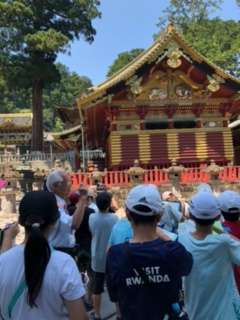 「見ざる、言わざる、聞かざる」の三猿や想像の像の彫刻の説明を聞きました。