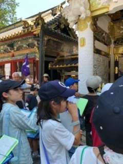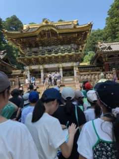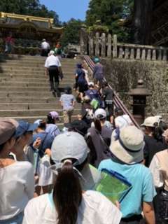 伊達政宗が寄進した灯籠を右手に見ながら階段を上り、陽明門に向かいました。修復を終えたばかりで金色が一際輝いていて、大変美しいです。