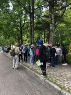 華厳の滝を見た後は、中禅寺湖畔をバスで進み、湯元に向かいました。湯ノ湖のそばの駐車場では、たくさんのトンボが飛んでいて、子どもたちや先生方の体や頭に次々にとまってきました。