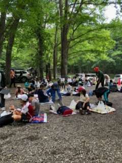 湯滝の近くで少し早めのお昼ご飯を食べました。これからたくさん歩くための準備は万端です。