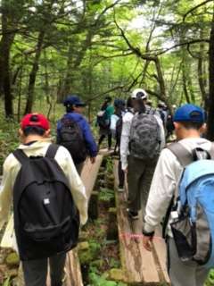 戦場ヶ原は平らなところばかりではなく、階段や坂の上り下りもあります。木道もでこぼこしているところがあるので、足元を見ていないと転んでしまいます。