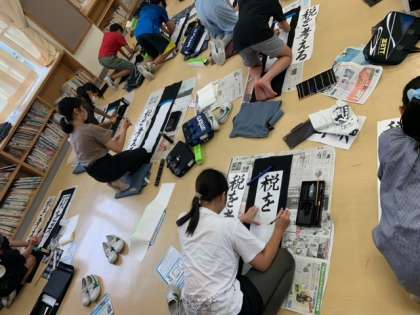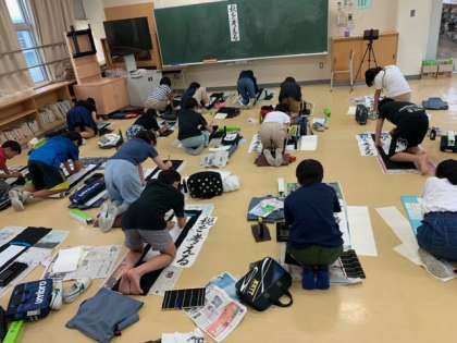 「税を考える週間」小学生書道作品展に向けて、取り組んでいます。