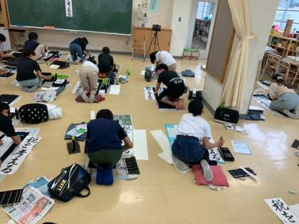 6年生の字は「税を考える」です。静かな空間の中で、集中して、一字一字書いていました。