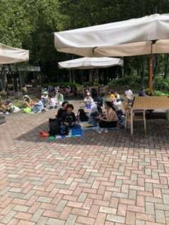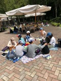 お家の方が作ってくださったお弁当を食べていました。友達とグループで日陰にうまく入ったりして食べました。早朝よりお弁当のご準備ありがとうございました。