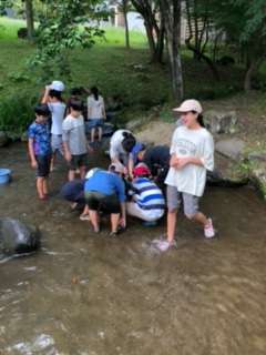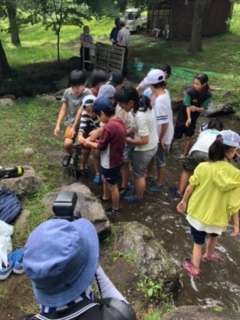 最後の一匹まで、みんなで岩場に追い込んで、逃げたらまた一斉に追いかけて捕まえて…いつもと違う5年生の姿でした!