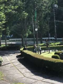 朝食を食べ、宿舎を後にするための荷物の準備と部屋の片付けをして、閉室式をしました。校旗を降納とともにビレジの生活は終わりになりました。