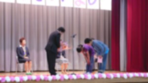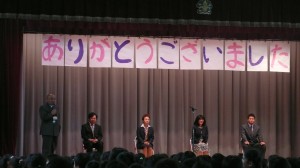 代表の児童の作文と花束で感謝の気持ちを伝えました。