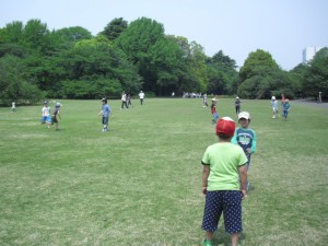 自由時間には、「おにごっこ」や「だるまさんがころんだ」