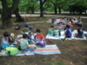 など緑に囲まれた広場をおもいっきり走り、体を動かしました。