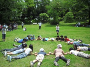 オリエンテーリングで班ごとにチェックポイントをめぐり、
