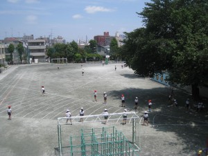 昨日は雨のため、体育館で上体起こしや反復横とび、