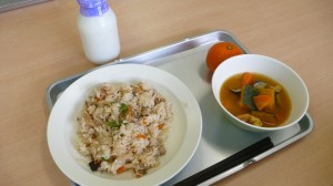 夏野菜のみそ汁にはナスやかぼちゃが入っています。