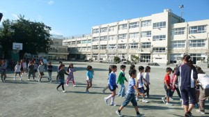 今月の避難訓練では、朝会時の避難の仕方を取り