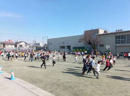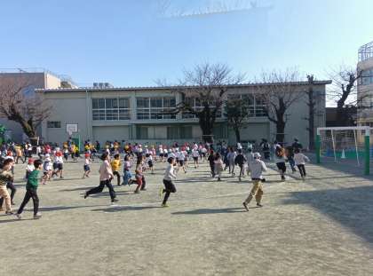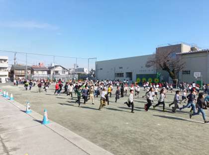 今朝の小雨が止み、中休みに持久走をしました。今日は1.3.5年生でした。寒い時期ですが、自分のペースで走りました。
