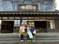 昔の薬屋さん(旧島田家住宅)です。蔵造りのお店で、屋根看板には「島田薬舗」と書かれています。明治三筆の一人で厳谷一六の書です。