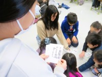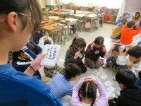 ロング集会「たてわりカルタ会」の様子です。1〜6年生のたてわり班のメンバーで、松...