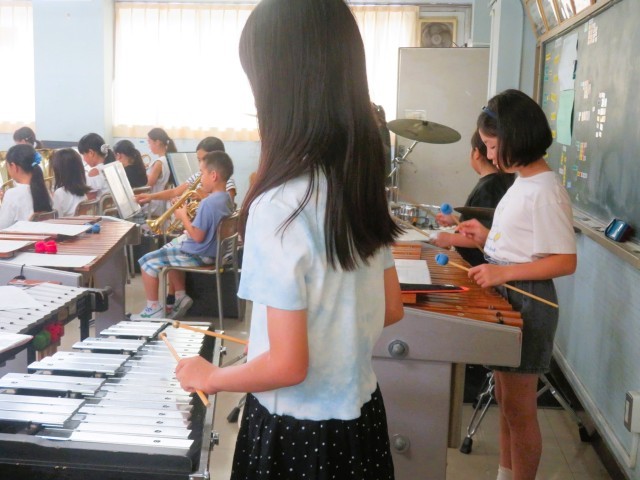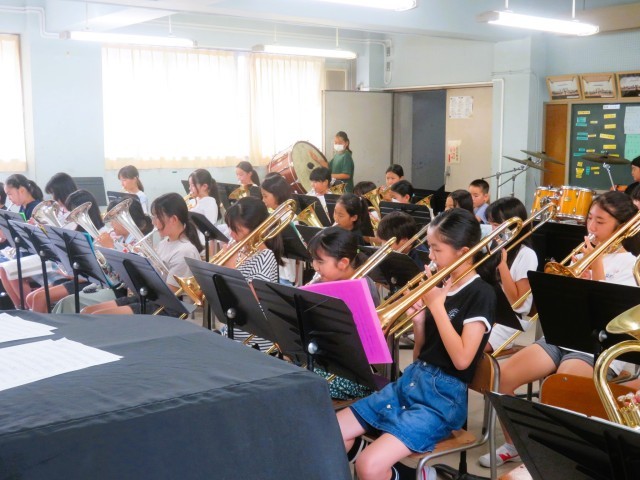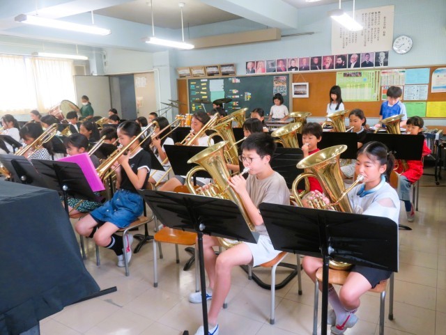 先日の緑陰子ども会において、迫力ある演奏を披露した金管バンドの皆さんは、休みなく新たな目標に向けて、朝練習をがんばっています。音楽室に入ると、いつも気持ちのいいあいさつがあり清々しい気持ちになります。