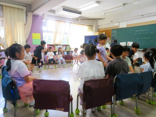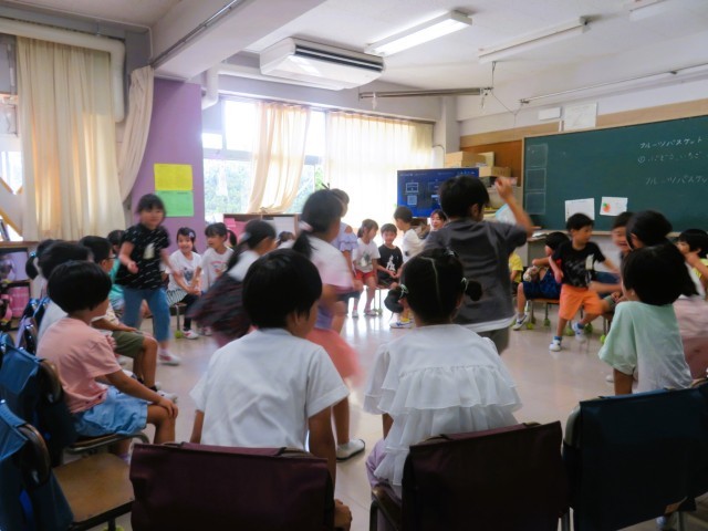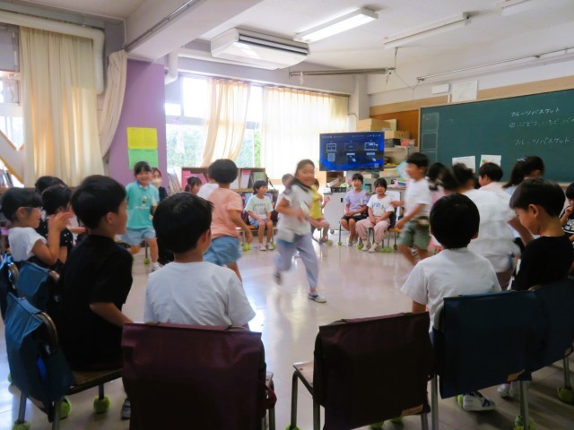 がんばった自分たちへのご褒美として、小学校には『お楽しみ会』という文化があります。学級会でめあて(目標)を決めて、内容を検討します。教室では、お笑いやマジック、宝探し、クイズ、室内ゲームなどを行います。体育館や校庭ではボールを使った遊びや鬼ごっこなどが行われます。