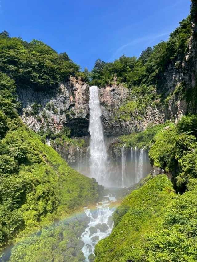 虹が見えました。水しぶきが生んだ絶景です。涼しくて迫力満点の華厳の滝を、しっかりと目に焼き付けて三本松へと向かいます。