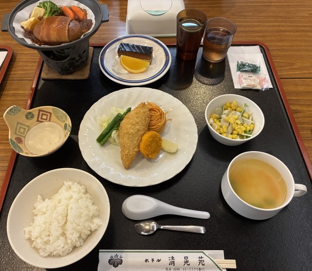 今日もボリュームたっぷりの夕食をいただきました。写真は、青晃苑の様子です。
