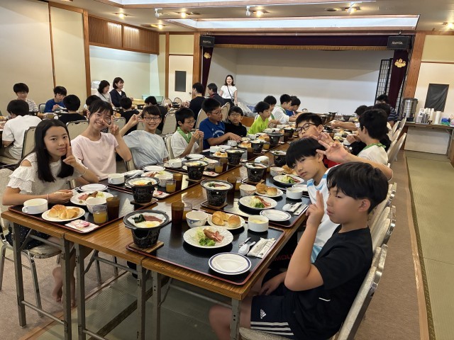 おはようございます。今日の天気予報は晴のち曇、最高気温は34度です。まずは美味しい朝食をいただきました。