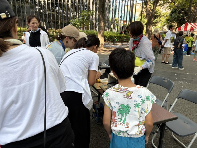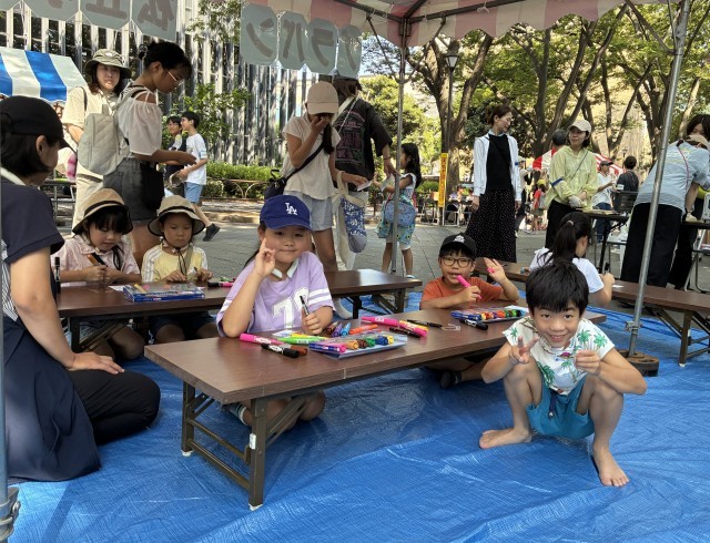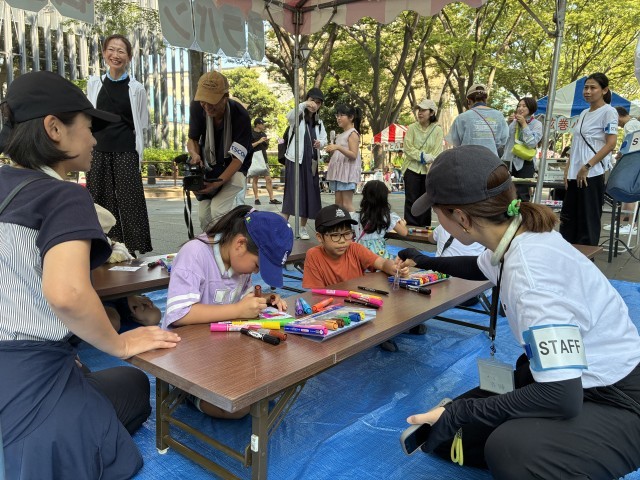 松丘小学校PTAの皆さんによる「プラバン」のコーナーです。大人気で行列ができていました。