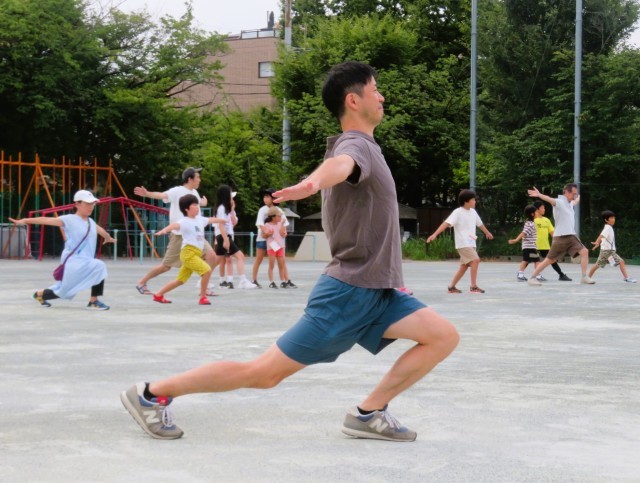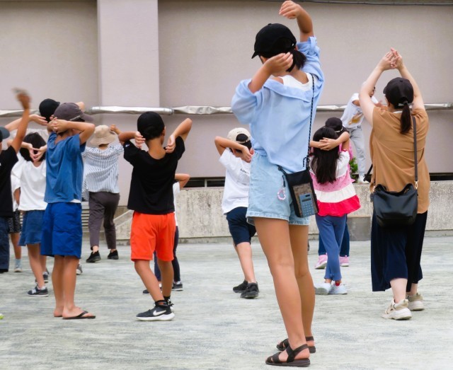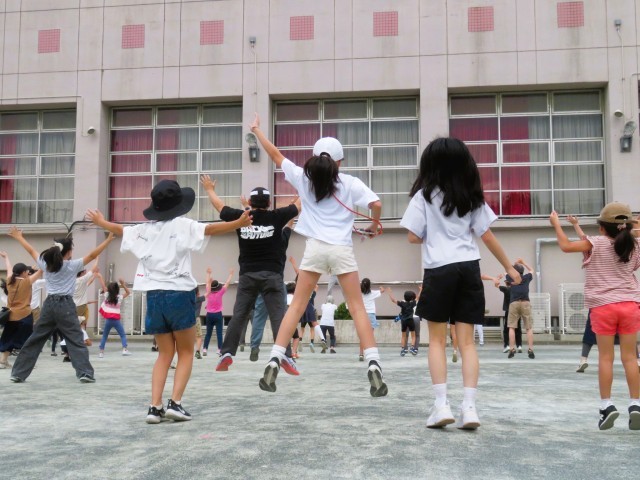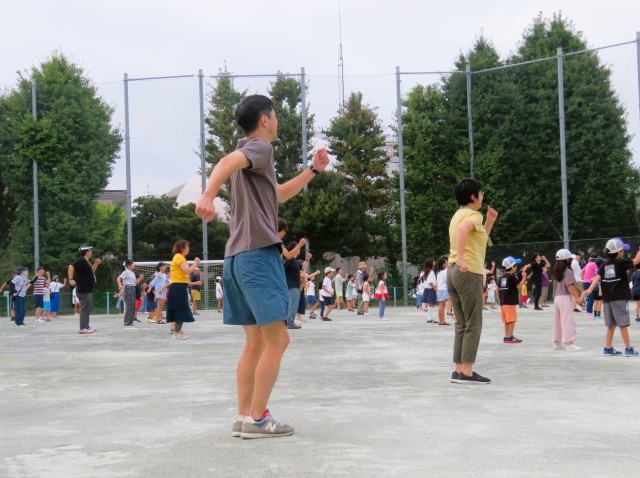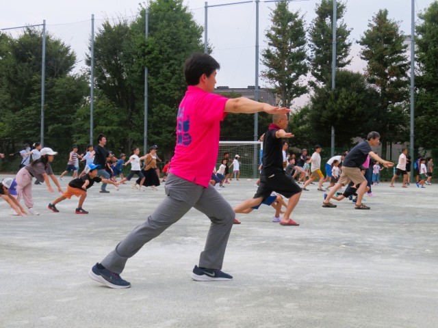 今朝はPTAラジオ体操係主催の「ラジオ体操」3日目、総勢204名が参加しました。2学期のスタートへ向け、生活リズムを立て直すうえでもピッタリな朝の活動です。本校2名の副校長や松パパクラブマスターも参加し予備的な運動からのスタートです!