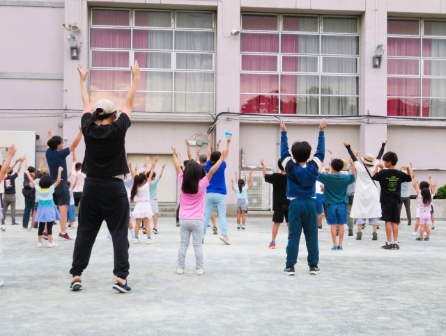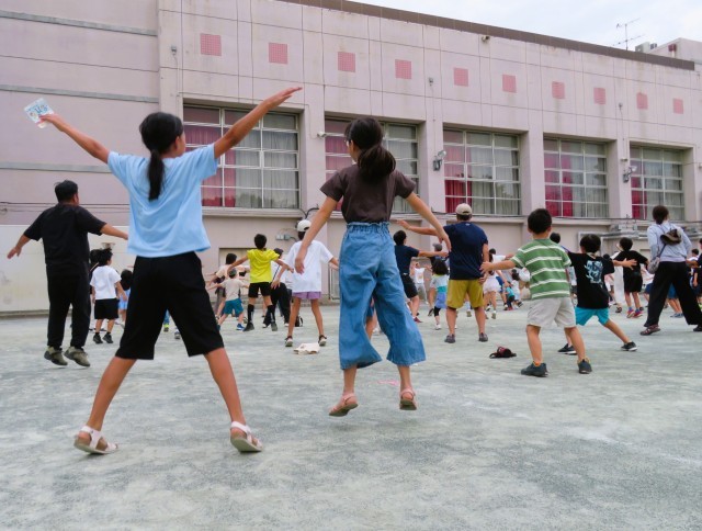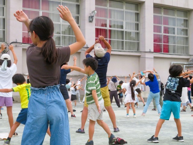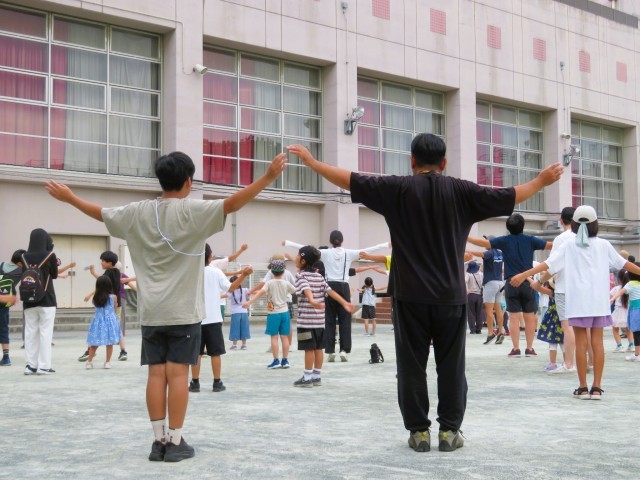 私は自宅が遠いので4時起きですが、頑張っている子どもたちや保護者・地域の皆さんとお会いできるのが楽しいです。ラジオ体操第一からスタートです。