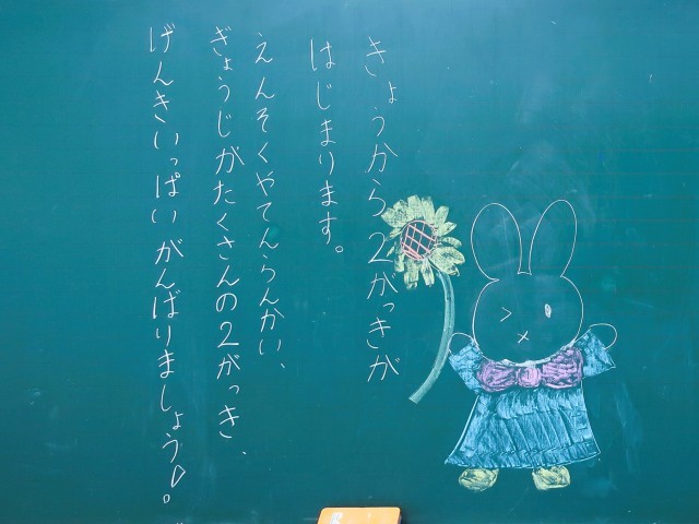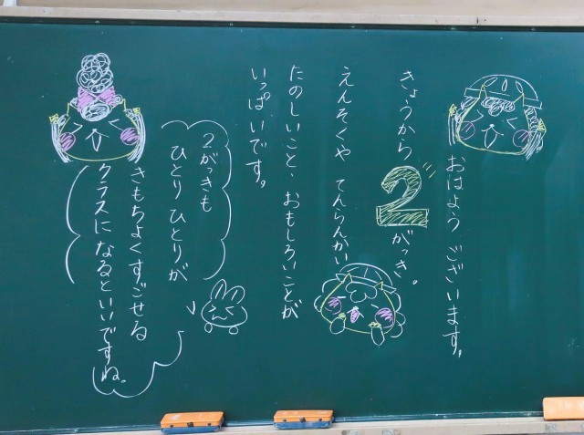 担任の先生からの温かいメッセージが、子どもたちを迎えていました。ここに紹介しているのは、そのごく一部です。