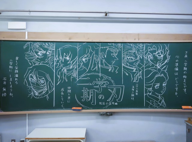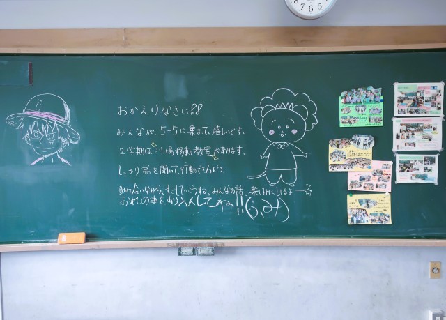 写真は、5年生の黒板です。