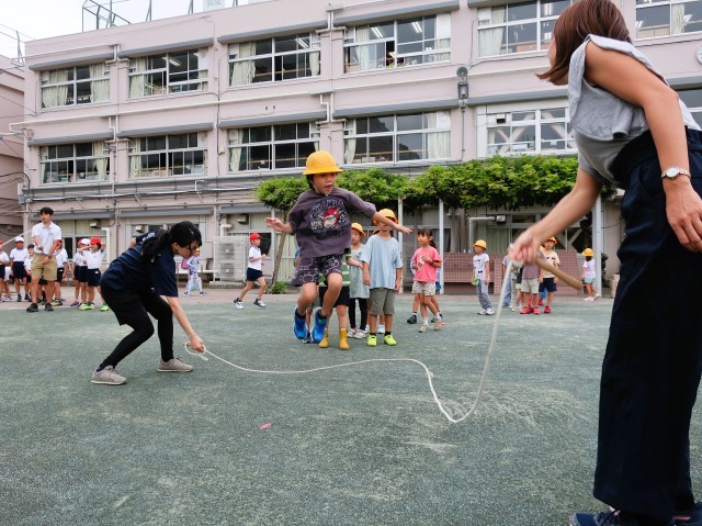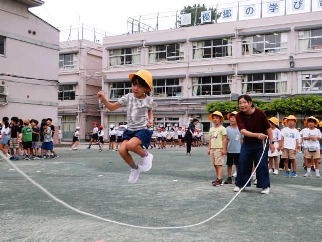 今朝は1・3・6年生の体育朝会です。長縄跳びは、学級のチームワークづくり、運動感覚づくりにはとてもよい運動種目なので全校で取り組みます。それぞれの学年・学級ごとに目標は異なりますが、自分たちのチームの力を信じて、目標を掲げがんばっています。