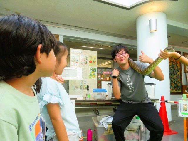 写真は、ヘビです。大蛇の首巻にチャレンジしている子と先生がいました!