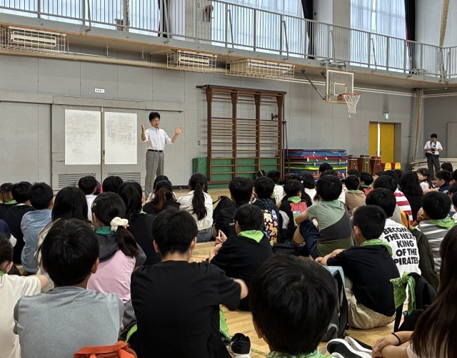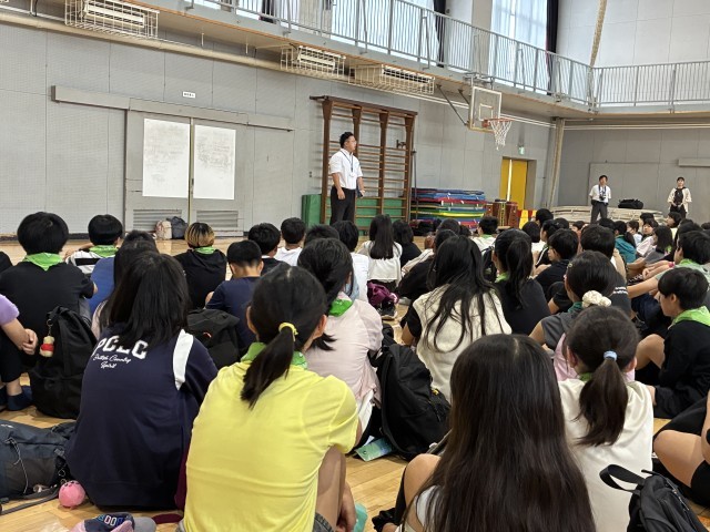 今日は6年生の社会科見学で、国会(衆議院)、科学技術館の見学です。まずは、出発式を行いました。