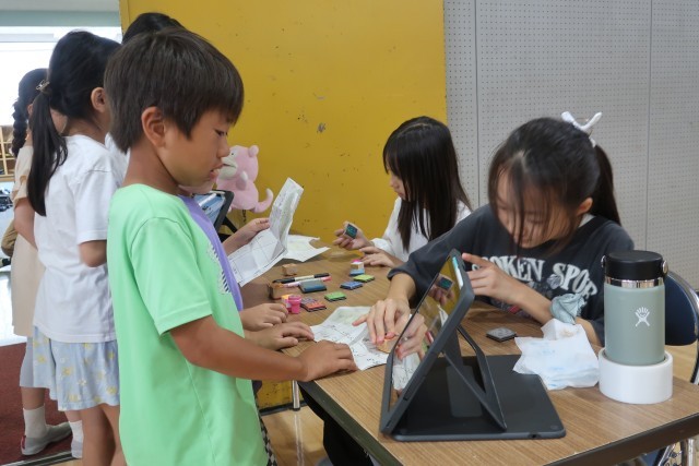 体育館でのお店屋さんの様子です。5年生が用意したどのお店で、3年生は大喜びでした。5年生も一生懸命お店を運営していて、これまでの準備も含めて大成功でした。