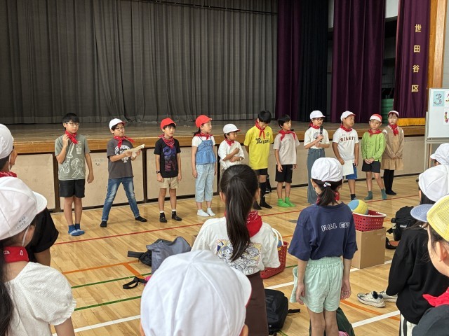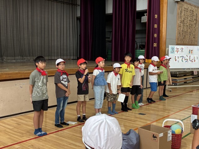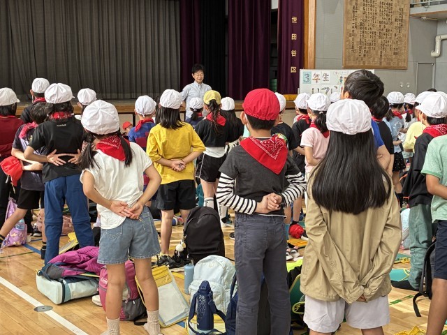 まずは、実行委員の子どもたちが主体となっての出発式です。3年生が出発するときに、4年生が「いってらっしゃい!」のメッセージボードを届けてくれました。