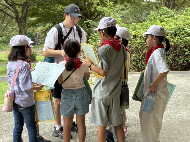 午後の部がスタートしました。班のみんなで協力しながら、ポイントに立っている先生たちのミッションをクリアしていきます。クイズのコーナーです!