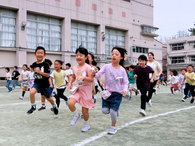 友達と一緒に走ることができて楽しそうです。この調子で楽しく体力づくりを行っていきます。