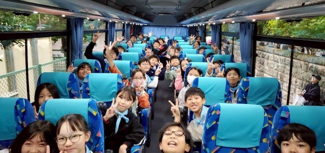 涼しくて最高のお天気です!子どもたちは、みんな元気でバスレクを楽しんでいます。もうすぐ川場です!
