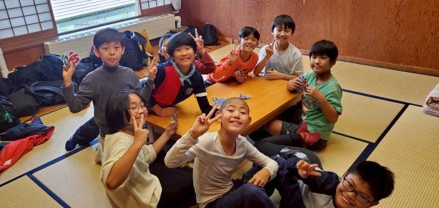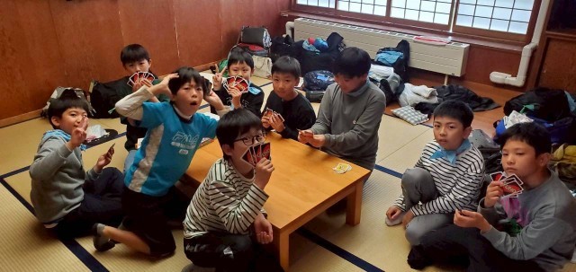 カードゲームを楽しんでいる班が多くあります。みんな元気です!