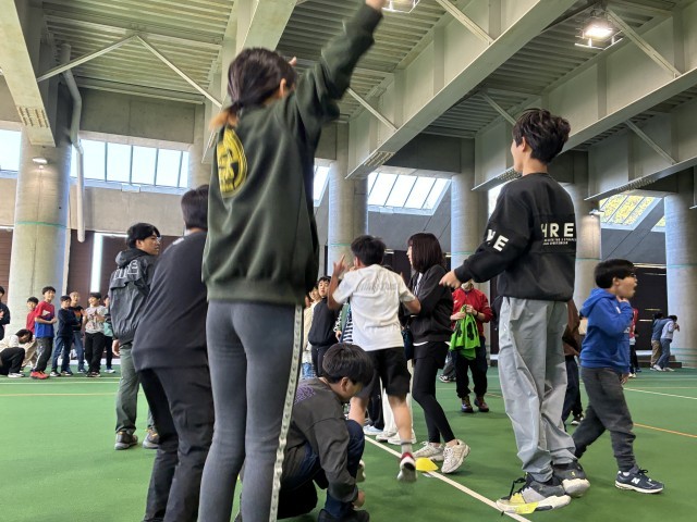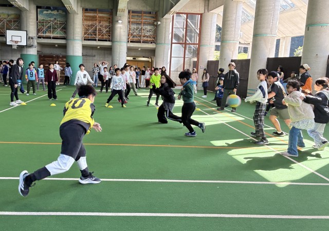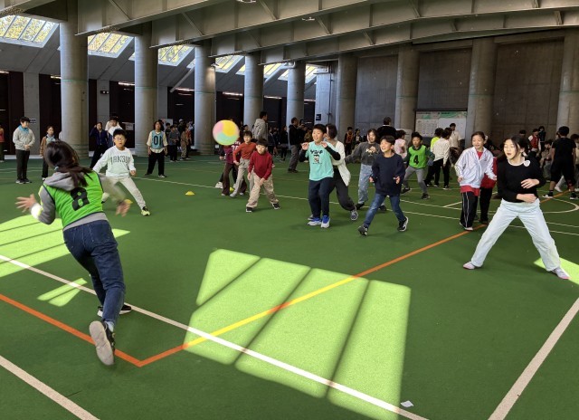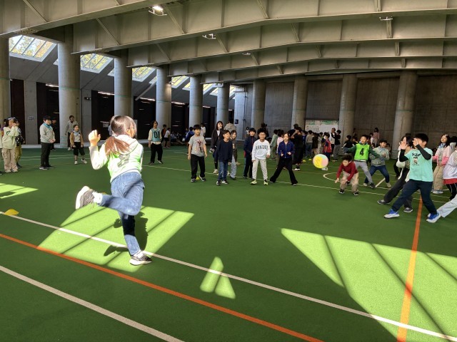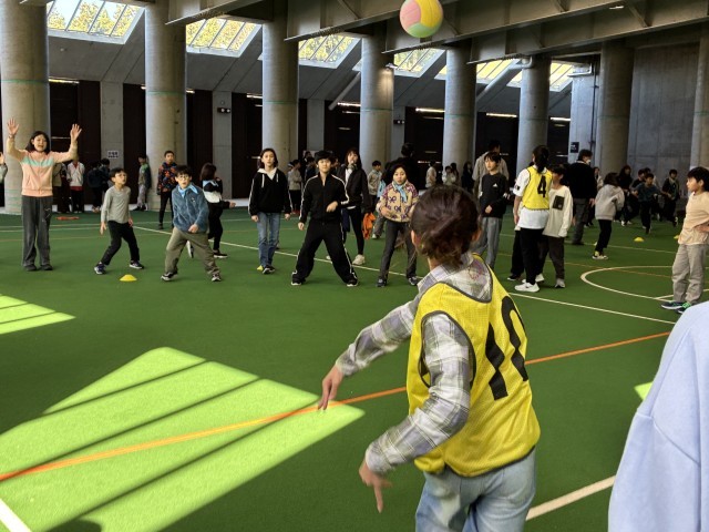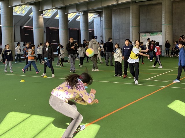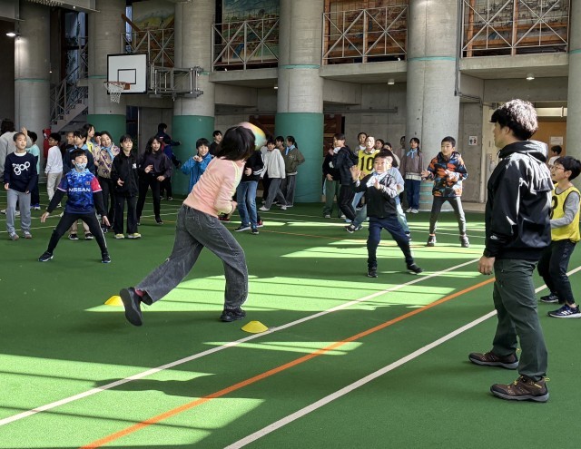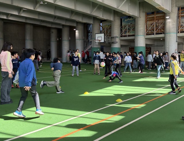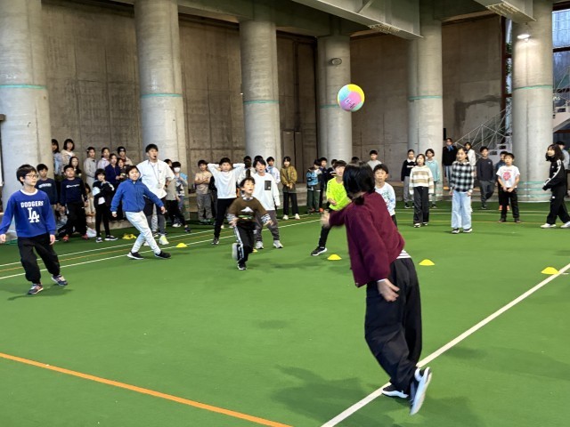 5年生のドッジボールは迫力満点でした。優勝チームは、先生チームと対戦できることになっています!