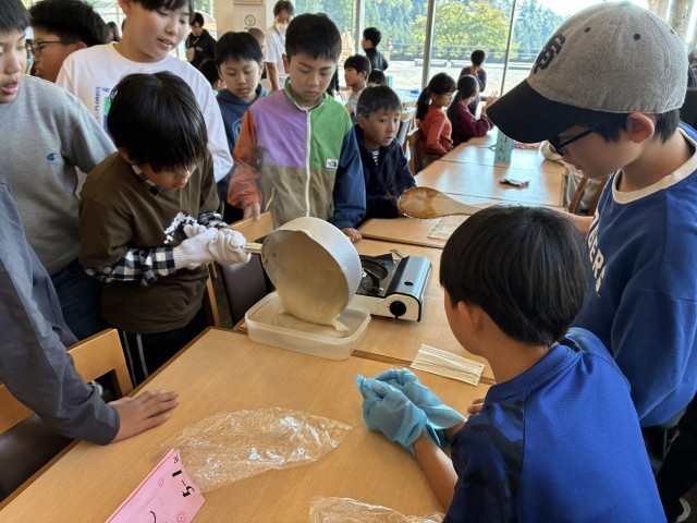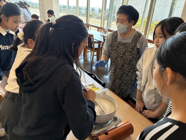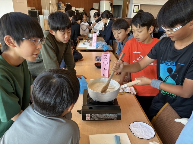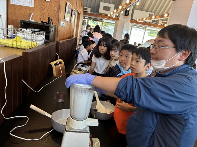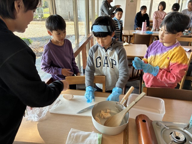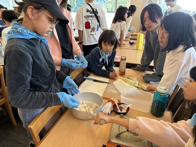 午後からは、生こんにゃく作りに挑戦です。地元のお母さんたちがきて、作り方を教えてくれました。