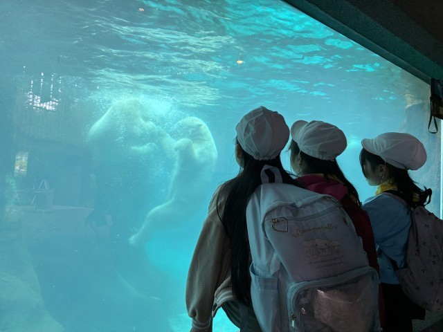 私は、ホッキョクグマが水中で戯れている姿が一番印象に残りました。ウマ、コウノトリ、オオワシを見学している様子です。