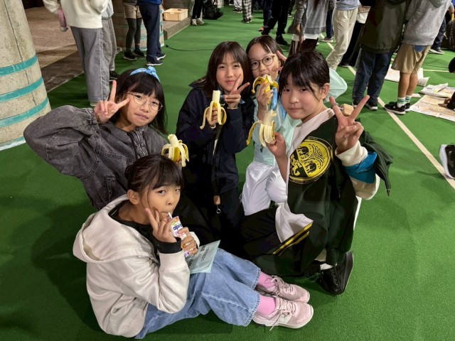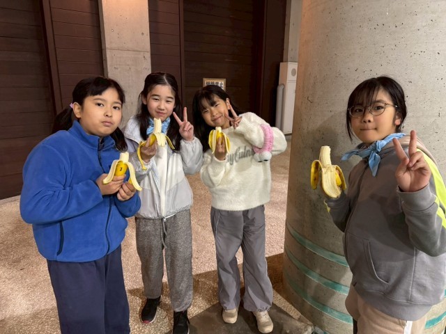 バードコール作りの後には、夜食のバナナを食べています。甘くて美味しいバナナです!