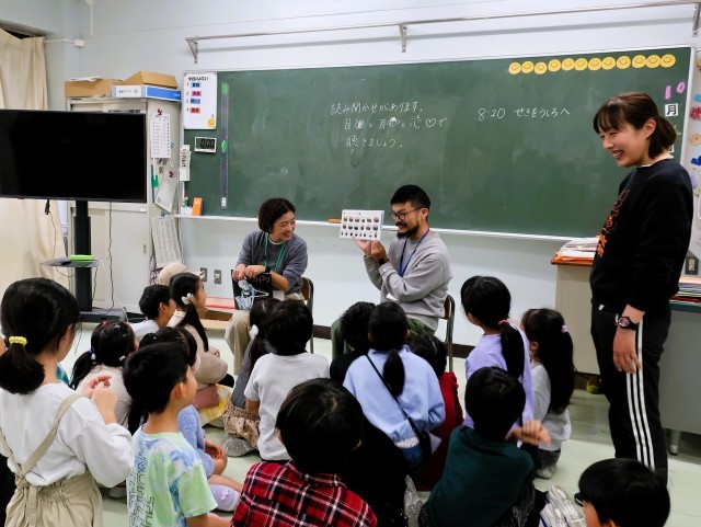 先週金曜日の始業前に、保護者の方々が読み聞かせをしてくださいました。季節にあわせた絵本や、学習にあわせた絵本など、いろいろな絵本を選んでくださり、子どもたちは興味津々で絵本を楽しんでいました。ありがとうございました。
