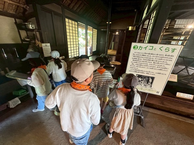 旧河内家の様子です。江戸時代から当地で続いている農家の家屋を復元したものだそうです。養蚕が盛んだったころの明治後期の建屋を忠実に再現したそうです。