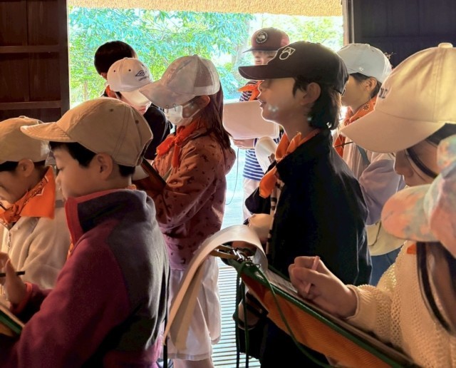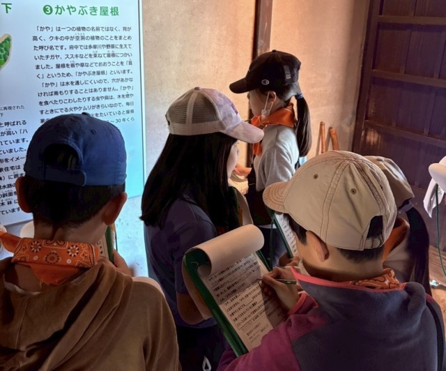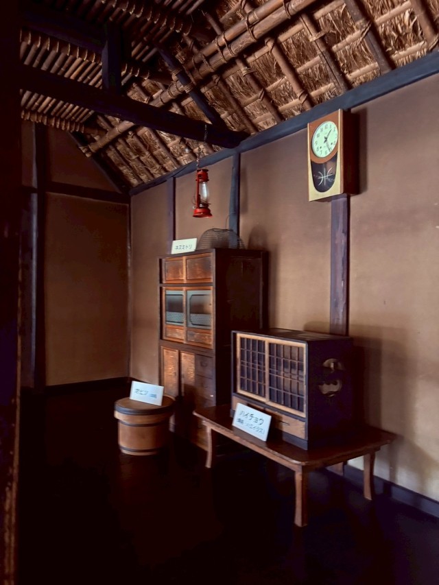 郷土の森には、昔の暮らしを再現している建物がいくつもあり、旧越智家もその一つです。稲作や養蚕を行っていた家と説明板に書かれていました。茅葺きの家で中は座敷や囲炉裏、土間等を見学して来ました。