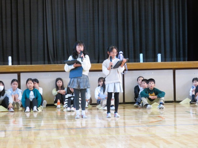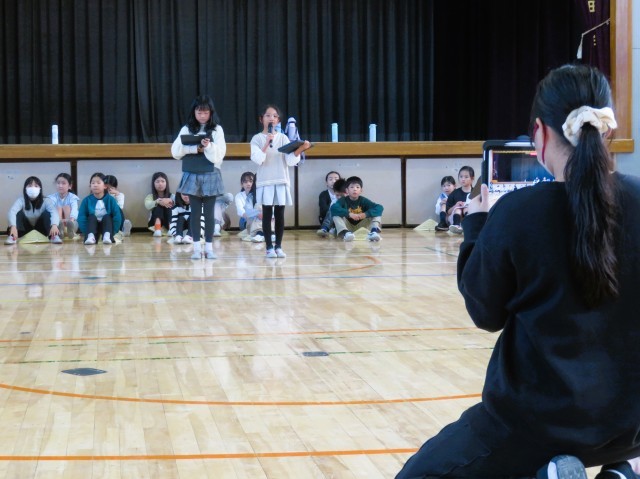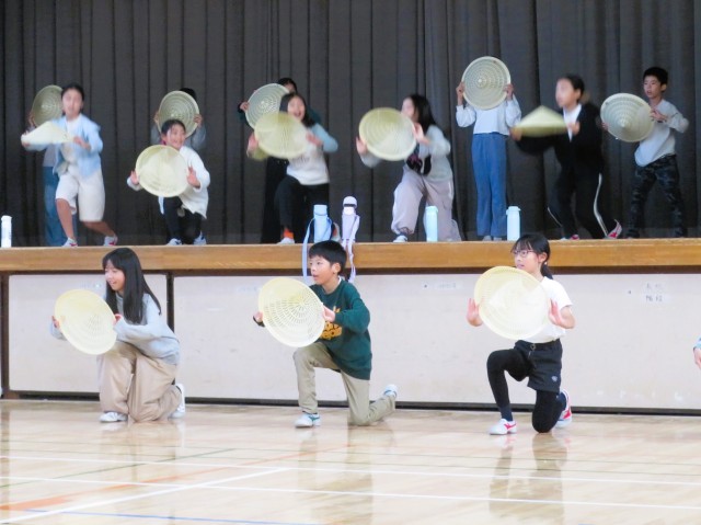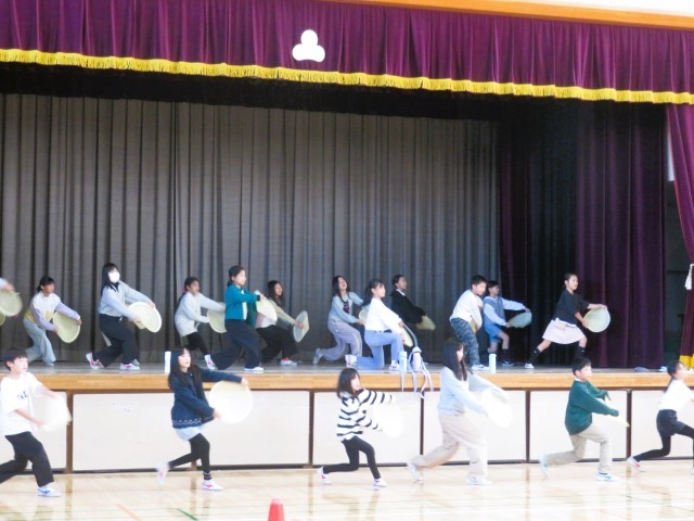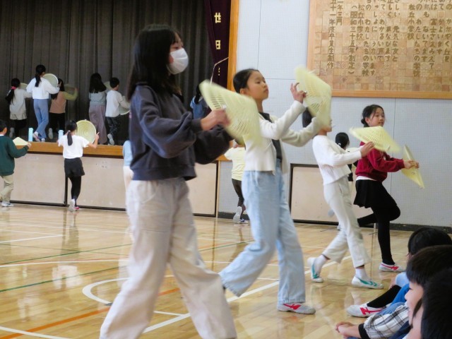 4年生は、韓国・清豊(チョンプン)初等学校との国際交流会に向けての練習が佳境を迎えています。11月27日に実施予定ですが、体育館はこの後、展覧会の準備で使用できなくなってしまうので、今回が最後の学年練習です。まずは歓迎のことば、そしてレセプションとして花笠音頭からスタートです!